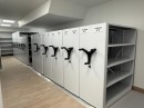 Разработали проект расстановки стеллажей в архиве, произвели и установили систему хранения на базе передвижных стеллажей с электронным приводом и механическим управлением. Все конструкции установлены на фальшпол для выравнивания полового покрытия. Высота стеллажей адаптирована под балки: ниже в местах перекрытий и выше там, где пространство позволяет. Использованы полочные стеллажи под бумажный формат А4.