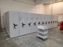Изготовили полочные передвижные шкафы на рельсах с замковыми механизмами. Доступ возможен только через крайние стеллажи с замками и распашными дверями, что защищает хранимое от несанкционированного доступа, пыли и света. Для удобства работы дополнительно добавили выдвижные полки и архивную тележку.