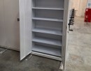 Крайние стеллажи оснащены замками, блокирующими движение. Это позволяет сэкономить денежные средства на оборудовании – внутренние стеллажи без дверей, но получить доступ к ним можно только через крайние секции.
