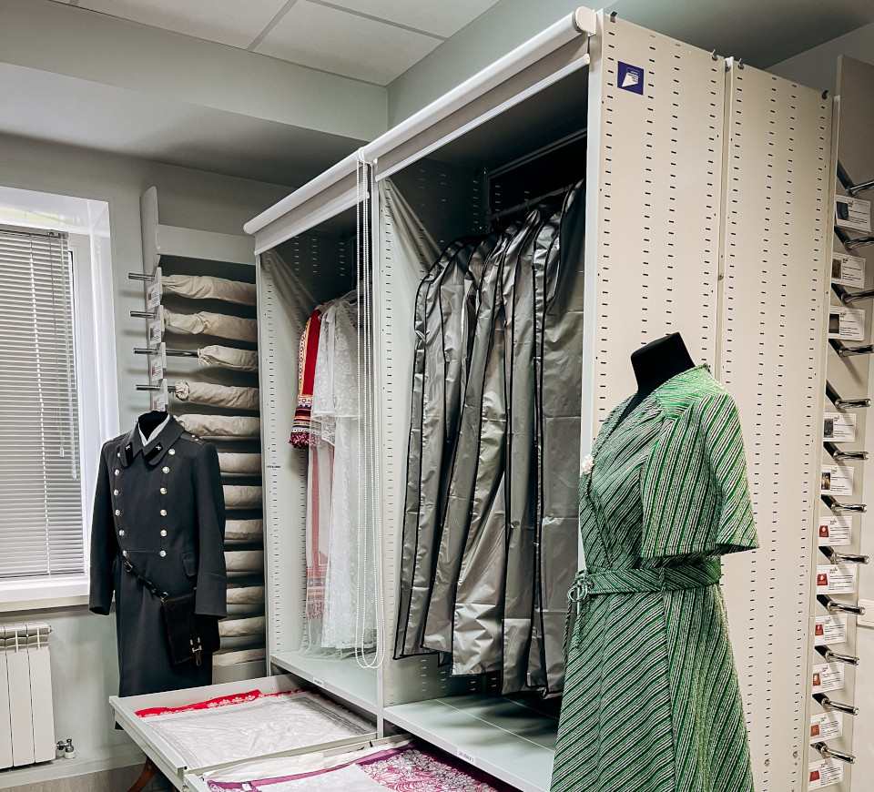 Изготовим передвижные стеллажи для хранения одежды на складе или в фондах музея с доставкой с завода производителя в города Новгородской области и России.