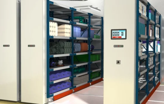 Этот тип автоматизированных передвижных стеллажей для склада оснащен электроприводом и управляется компьютерной АРМ системой. Это современное и технологичное решение.
