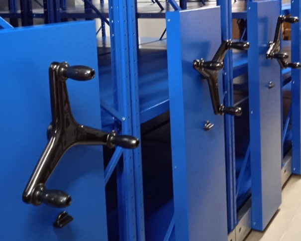 Использование передвижных складских стеллажей позволяет увеличить в 2 раза вместимость при сохранении прежней площади или уменьшить в 2 раза площадь, занятую складом, при сохранении объема хранимой продукции. С этими стеллажами вы: